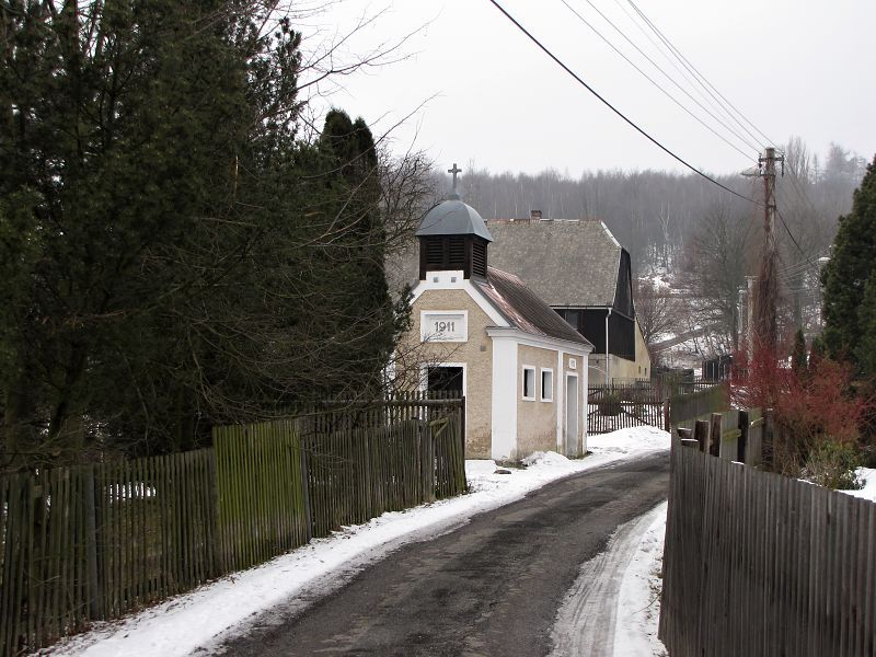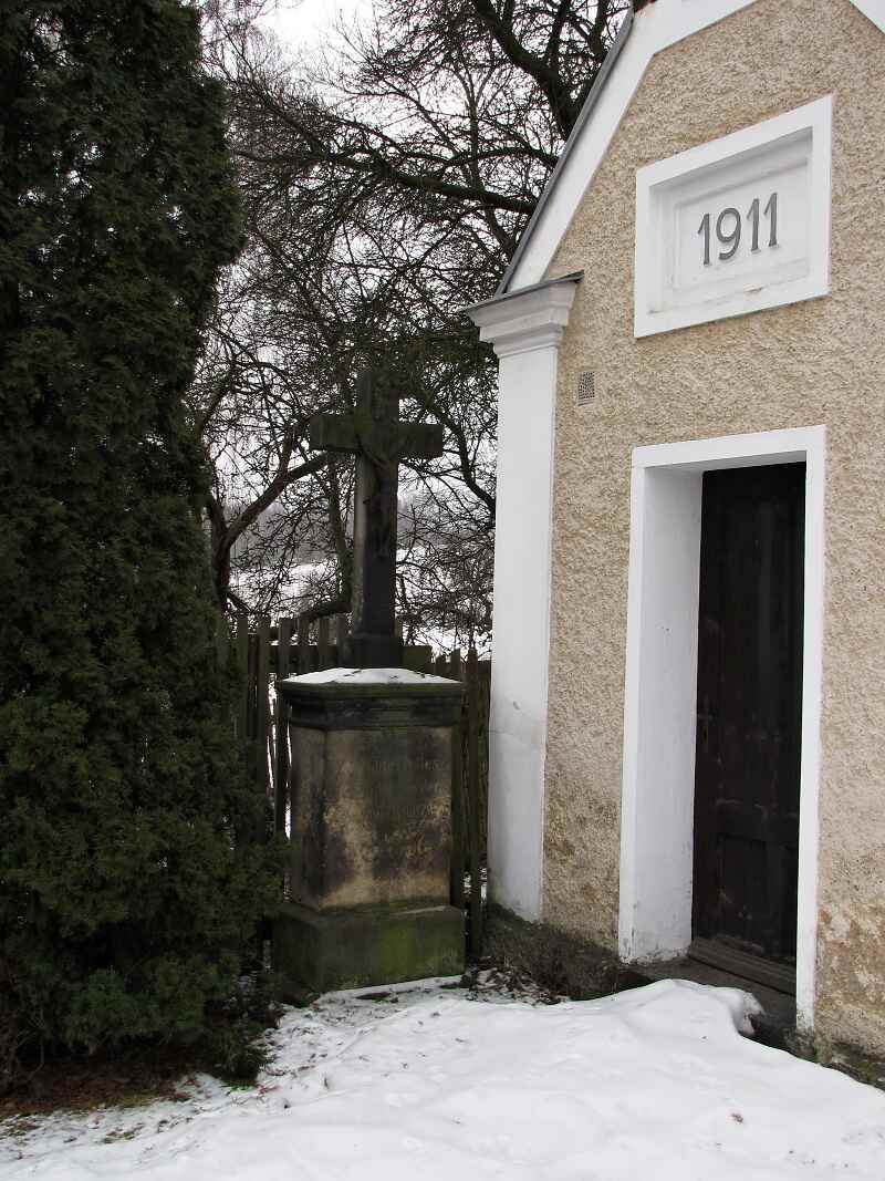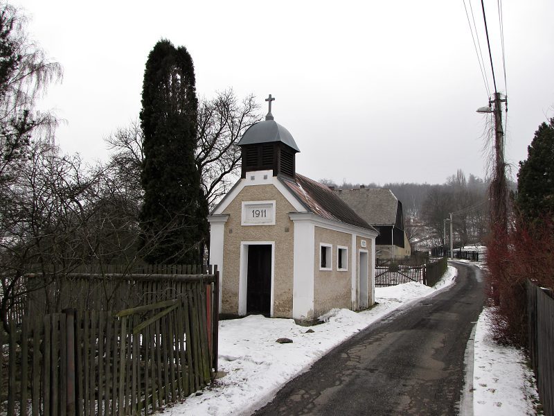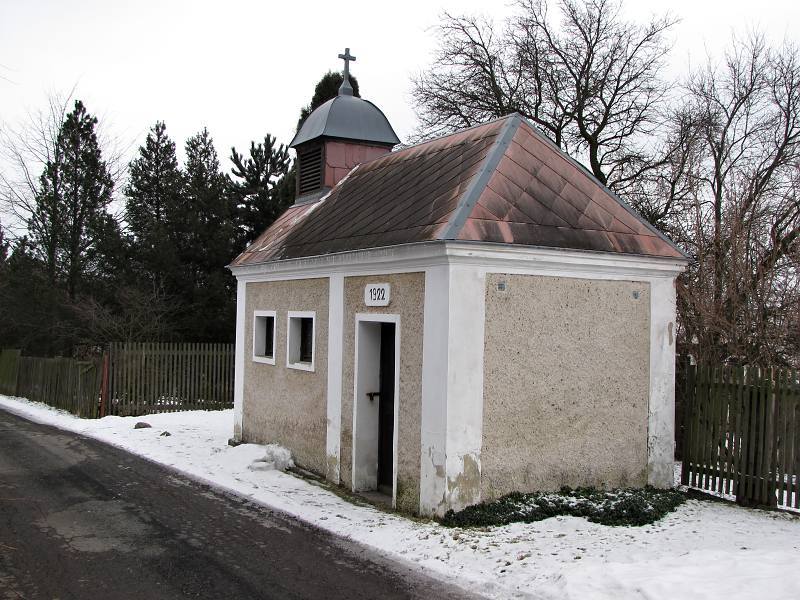 U této relativně mladé kapličky, nám její architekt usnadnil zjistit rok postavení jen zdánlivě, v jejím průčelí je rok 1911, ale z boku nade dveřmi 1922. Možná rok rekonstrukce, ale to dost brzy…U kapličky je kříž, který pak nese rok 1884. Kaple prošla v r.2000 renovací.