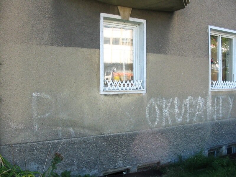 Protože dosud nevlastním jedinou fotografii dosvědčující přítomnost okupačních vojsk v Litvínově, dokládám poslední svědky těch událostí v podobě českého fenoménu té doby – nápisů na zdech.